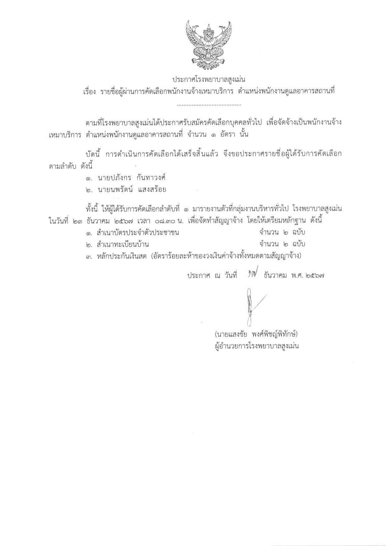 ประกาศรายชื่อผู้ผ่านการคัดเลือกเพื่อแต่งตั้งเป็นลูกจ้างชั่วคราว (รายวัน) ตำแหน่งพนักงานดูแลอาคารสถานที่