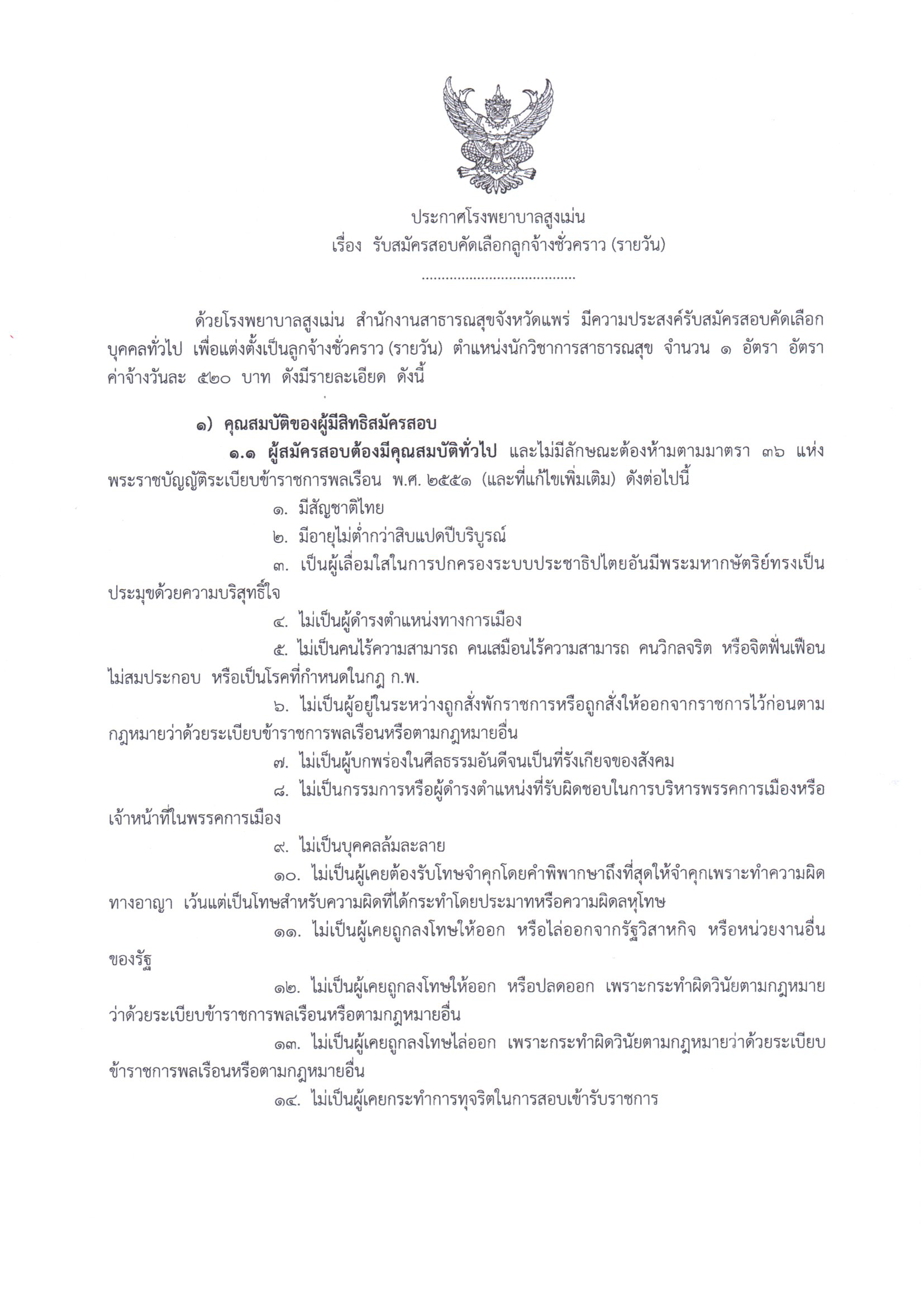 ประกาศรับสมัครสอบคัดเลือกลูกจ้างชั่วคราว (รายวัน) ตำแหน่งนักวิชาการสาธารณสุข จำนวน 1 อัตรา