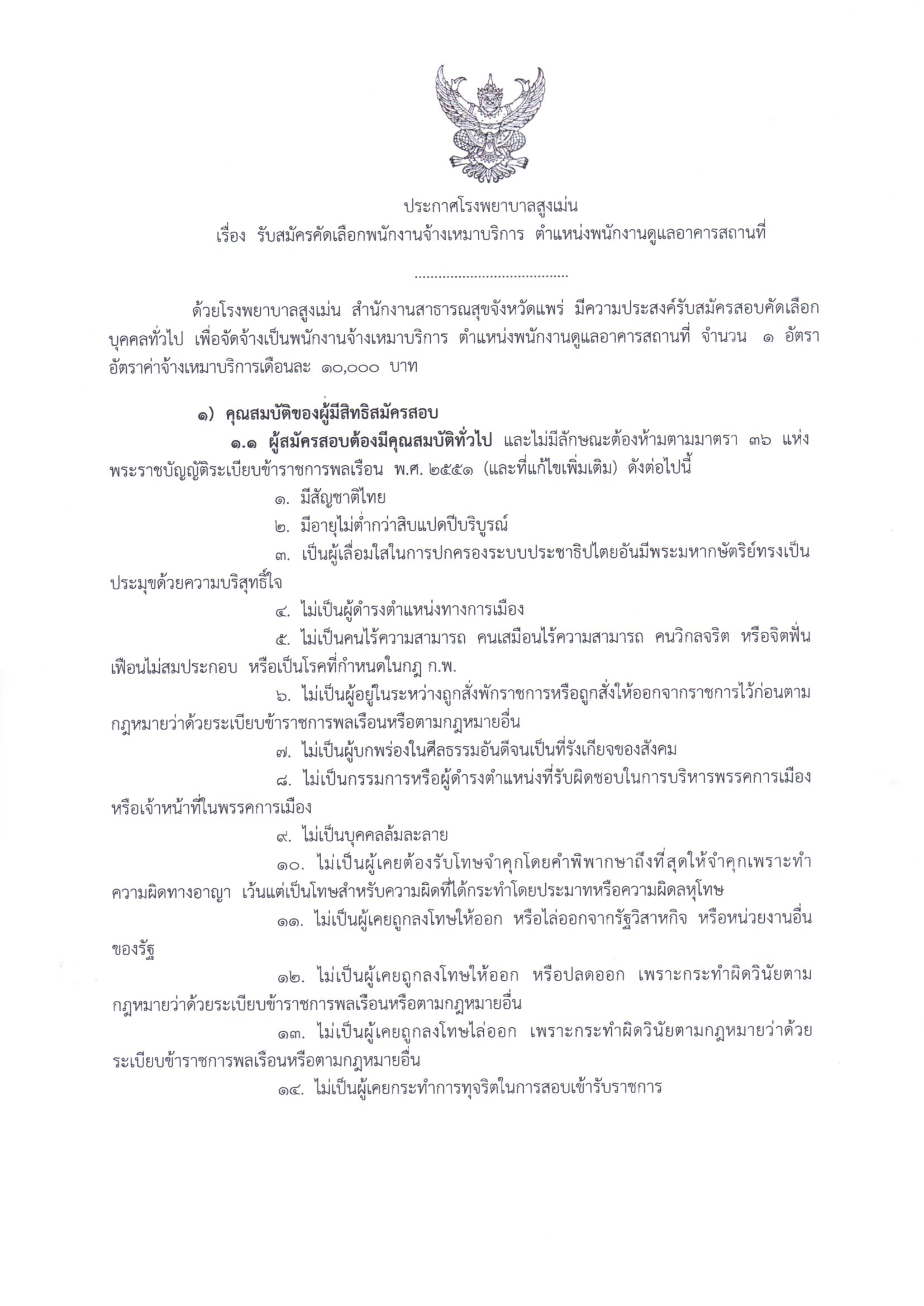 ประกาศรับสมัครคัดเลือกพนักงานจ้างเหมาบริการ ตำแหน่งพนักงานดูแลอาคารสถานที่ จำนวน 1 อัตรา
